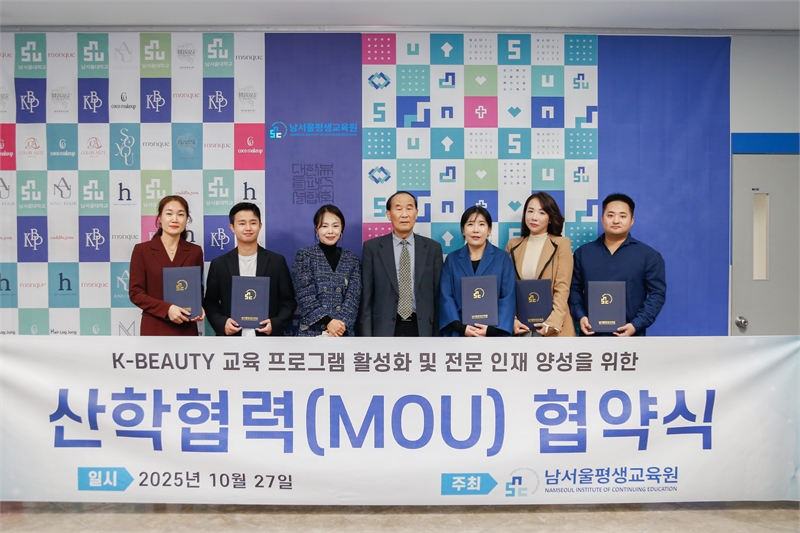 남서울평생교육원(학장 빈대욱)은 10월 27일(월) 서울 신설동 캠퍼스에서 뷰티·헬스 산업의 전문 인력 양성과 교육 프로그램 활성화를 위해 총 8개 산업체와 전략적 산학협력 협약(MOU)을 체결했다.이번 협약식은 급변하는 뷰티·헬스 산업 환경에 대응하여 교육과 산업을 잇는 실질적인 협력체계를 구축하고, 현장 중심의 산업